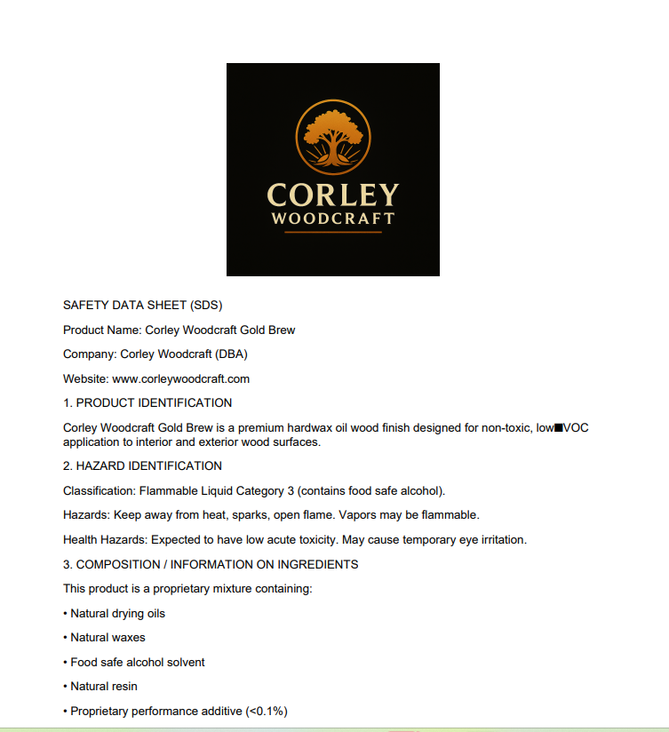 Crafted with the same care we put into our finish, this Safety Data Sheet outlines the essential safety and regulatory information for Gold Brew.